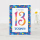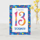 A bright and colourful 13th Birthday Card for a Son, with striped numbers and a starry border, from a digital design by Judy Adamson. You can change the inside message if you wish.