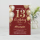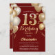 13th Birthday Dark Red and Gold Balloons Confetti Invitation