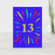 An explosive 13th birthday card! What a wonderful way to send birthday greetings. The number 13 in bright yellow with an explosion of bright colours and stars.