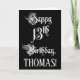 The front of this ornate and fancy birthday greeting card design features the message “Happy 13th Birthday,” in luxurious script style text, on a black coloured background. The inside has a personalised birthday greeting message, or could perhaps be cleared and left blank if a message is to be written by hand instead. An elaborate, customised birthday greeting card like this might be a respectable way to deliver some birthday wishes to somebody who is celebrating their thirteenth birthday. [~Z0000554]