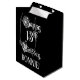 This luxurious and formal birthday gift bag design features the message “Happy 13th Birthday,” in opulent script style text, on a black coloured background. It also has a personalised recipient name. A giftbag like this might be used when wrapping gifts being given to somebody in celebration of their 13th birthday. [~Z0000557]