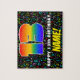This cheerful and vibrant birthday themed jigsaw puzzle design features a large number “13” with a multicolored rainbow spectrum inspired gradient pattern, along with the message “HAPPY 13th BIRTHDAY,”, and a customisable recipient name. The background features a fun pattern of musical symbols and notes of various colours and sizes. A joyful, customisable birthday puzzle like this might be a fun way to deliver birthday wishes to somebody who is celebrating their thirteenth birthday. These might be more meaningful if that person is a composer, a singer, a songwriter, a musician, or otherwise loves music. [~Z0000608]