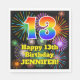13th Birthday: Fun Fireworks Pattern + Rainbow 13 Napkin