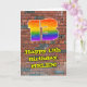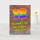 This exciting and fun urban street art and graffiti themed birthday greeting card design features a large number “13” with a multicolored rainbow spectrum gradient inspired pattern, along with the message “Happy 13th Birthday,”, and an editable name. The background of the front has a brick wall pattern. The inside has a custom birthday greeting message, or could perhaps be cleared and left blank if a message is to be written by hand instead. A vibrant, customised birthday greeting card like this might be a fun way to deliver some birthday wishes to somebody who is celebrating their thirteenth birthday. [~Z0000586]