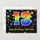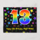 13th Birthday: Fun Stars Pattern, Rainbow 13, Name Postcard