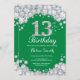13th Birthday Green and Silver Diamond Invitation