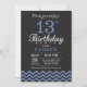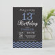 13th Birthday Invitation with Black and Blue Chevron. Chalkboard. Kids Birthday. Boy or Girl Bday Invite. For further customisation, please click the "Customise it" button and use our design tool to modify this template.