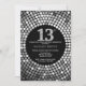 13th Birthday Invitation Black and Silver Glitter
