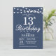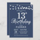 13th Birthday Invitation with String Lights. Blue Background. Kids Birthday. Boy or Girl Lady Bday Invite. 13th 15th 16th 18th 20th 21st 30th 40th 50th 60th 70th 80th 90th 100th, Any age. For further customisation, please click the "Customise it" button and use our design tool to modify this template.