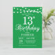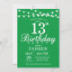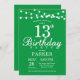 13th Birthday Invitation with String Lights. Green Background. Kids Birthday. Boy or Girl Lady Bday Invite. 13th 15th 16th 18th 20th 21st 30th 40th 50th 60th 70th 80th 90th 100th, Any age. For further customisation, please click the "Customise it" button and use our design tool to modify this template.