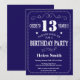 13th Birthday Invitation Navy Blue and White Typography. Navy Blue and White Background. Kids Birthday. Male Men or Women Birthday. Kids Boy or Girl Lady Teen Teenage Bday Invite. 13th 15th 16th 18th 20th 21st 30th 40th 50th 60th 70th 80th 90th 100th. Any Age. For further customisation, please click the "Customise it" button and use our design tool to modify this template.