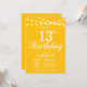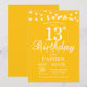 13th Birthday Invitation with String Lights. Yellow Background. Kids Birthday. Boy or Girl Lady Bday Invite. 13th 15th 16th 18th 20th 21st 30th 40th 50th 60th 70th 80th 90th 100th, Any age. For further customisation, please click the "Customise it" button and use our design tool to modify this template.