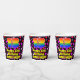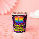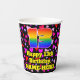 This cheerful and colorful birthday paper cup design features a large number “13” having a rainbow spectrum gradient inspired pattern. It also features the message “Happy 13th Birthday,”, and a custom name. The background features a pattern of pink, purple, and red heart shapes of various sizes. Cheerful, upbeat paper cups like this might be fun to use at a birthday party being held to honor somebody’s 13th birthday. [~Z0000548]
