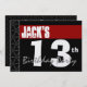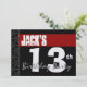 13th Birthday Modern Red White Black Metallic Invitation