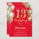 13th Birthday Red and Gold Balloons Confetti Invitation