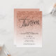 This trendy rose gold ombre glitter birthday party invitation features faux rose gold sparkly glitter and a bold typography heading. Add your custom text using the template form. Additional options for text and layout are available if you choose to customise further.