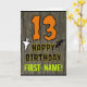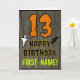 The front of this spooky and scary Halloween birthday themed greeting card design features a large number "13", along with the message "HAPPY BIRTHDAY,", and a custom name. There are also depictions of a ghost and a bat on the front. The inside features an editable birthday greeting message, or could perhaps be cleared and left blank if a message is to be written by hand instead. A personalized birthday card like this might be a fun way to send birthday wishes to somebody who is celebrating their thirteenth birthday and who was also born on Halloween (October 31st). [~Z0000410]