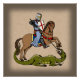 Though often portrayed as a mediaeval knight, Saint George was a late 3rd-early 4th century military tribune (martyred circa 303). According to legend, George heroically killed a dragon that had been terrorising the countryside around Silena in Libya. This particular portrayal of the warrior-saint by Richard H. Fay depicts him armed as a mediaeval knight of the 13th century.