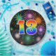 This cheerful, fun, and colourful paper plate design features a large number "13" coloured with a rainbow spectrum gradient inspired pattern. It also features a exciting and vibrant bursting celebratory fireworks inspired pattern. It has a black coloured background. Paper plates like this might be used when celebrating somebody’s thirteenth birthday, a thirteenth anniversary, or some other 13th event. [~Z0000490]