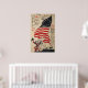A World War I poster showing a man raising the American flag, with a minuteman cheering and an eagle flying above.