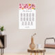 This pink floral seating chart will help your guests find their table. It is suitable for a wedding with 14 tables and up to 140 guests.