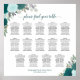 This stunning 14 table wedding seating chart will elevate the beauty and charm of your special day, while making it easy for your guests to find their tables! With a rustic boho chic floral design, this seating chart showcases hand painted watercolor roses, eucalyptus leaves and garden foliage in shades of teal, turquoise, aqua, and cyan. The elegant script calligraphy title and seating assignments for 140 people with 10 seats per table, make it easy for your guests to find their seats, while adding a touch of sophistication to your wedding reception. Make your big day even more unforgettable with this beautiful seating chart!