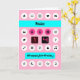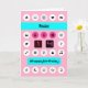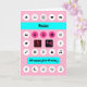 Personalise this 14th birthday card by adding a name to the blue stripe across the front of the card. "#happybirthday" is the greeting on the speech bubble, and the design is composed of birthday and computer icons on a pink background, echoing the smartphone theme. Buttons with the numbers 1 and 4 in pink specify the age.