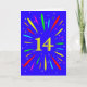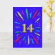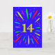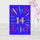 An explosive 14th birthday card! What a wonderful way to send birthday greetings. The number 14 in bright yellow with an explosion of bright colours and stars.