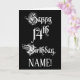 The front of this opulent and fancy birthday greeting card design features the message “Happy 14th Birthday,” in luxurious script style text, on a black coloured background. The inside has a customisable birthday greeting message, or could perhaps be cleared and left blank if a message is to be written by hand instead. A formal, customised birthday greeting card like this might be a respectable way to send some birthday wishes to somebody who is celebrating their fourteenth birthday. [~Z0000554]