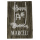 This luxurious and formal birthday-themed gift bag design features the message “Happy 14th Birthday,” in opulent script style text, on a faux wood look inspired pattern background. It also features a customisable recipient name. A fancy birthday themed gift bag like this might be a respectable way to wrap a gift or present being given to somebody who is celebrating their fourteenth birthday. [~Z0000558]