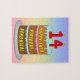 14th Birthday: Fun Cake and Candles + Custom Name Jigsaw Puzzle