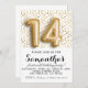 14th Birthday Gold Polkadot Invitation