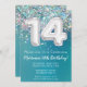 14th Birthday Invitation Teal Silver Glitter