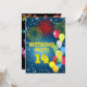 A fun 14th birthday party invitation with happy colours, balloons and fireworks. See the whole range of invitations and cards in my store.