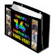 This joyful and eye-catching birthday-themed gift bag design features the message “HAPPY 14TH BIRTHDAY,“ with the text having a multicolor rainbow spectrum inspired gradient pattern, along with a customisable recipient name. To the left and the right of the rainbow-patterned message on the front are some photos that can be personalised, perhaps with photos of the recipient, the recipient’s family and friends, and/or the sender(s) of the gift. A cheerful gift bag like this might be a fun way of wrapping a birthday gift being given to somebody who is celebrating their fourteenth birthday. (Photography © Storytree Studios, Stanford, CA.) [~Z0000668]