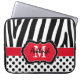 This chic and trendy personalised red, black, and white zebra stripes and polka dots laptop sleeve has text boxes for you to add your name and monogram. ****PLEASE email me if you want a SMALLER size one made up, as selecting it on your own will cause the design and text boxes to slip. If you need help customising this with your own info, please email niteowlstudio@gmail.com for help.