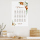 Help your guests find their table with this burnt orange and white rose floral wedding seating chart. It is suitable for a wedding with 15 tables and 150 guests.