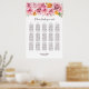 This pink floral seating chart will help your guests find their table. It is suitable for a wedding with 15 tables and up to 150 guests.