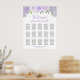 This beautiful 15 table wedding seating chart features a rustic floral boho chic design with a bevy of hand painted watercolor roses, blossoms, and flowers in shades of dusty purple, lavender, and lilac, along with sprigs of eucalyptus leaves and garden greenery. The elegant script calligraphy title reads "Welcome! please find your table" and there is space for the names of the couple and wedding date at the bottom. This chart has table assignments for 150 guests with 10 seats per table. Wonderful way to add beauty, style, and charm to your wedding reception while making it easy for your guests to find their seats.