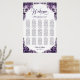 Help your guests find their table with this purple floral seating chart. It is suitable for a wedding with 15 tables and up to 150 guests.