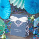 Crystal wedding anniversary party thank you gift box. Personalise with your name. Great to add a touch of personalised crystal 15th wedding anniversary party, dinner parties and informal gatherings. Ideal gift packaging for favours or to place on reception dinner tables or party tables filled with sweets or gifts. Would also make a nice parting commemorative thank you gift. Blue and white heart crystal stones affect art and design by Sarah Trett for www.mylittleeden.com