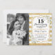 15th Anniversary with Photo - Gold White Invitation