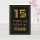 The front of this vintage appearance birthday greeting card design features a large Art Deco style inspired number "15", the message "HAPPY 15th BIRTHDAY,", a personalized name, and a border pattern consisting of lines. The inside features a custom birthday greeting message, or could perhaps be cleared and left blank if a message is to be written by hand instead. A personalized birthday card like this might be a fun way to acknowledge somebody’s fifteenth birthday. [~Z0000394]