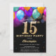 15th Birthday Black and Gold Colourful Balloons Invitation