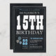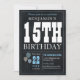 15th Birthday Chalkboard Blue Balloon Rustic Chic Invitation