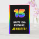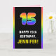 15th Birthday: Colourful Rainbow # 15, Custom Name Card
