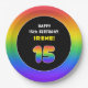 15th Birthday: Colourful Rainbow # 15, Custom Name Paper Plate