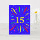 An explosive 15th birthday card! What a wonderful way to send birthday greetings. The number 15 in bright yellow with an explosion of bright colours and stars.