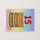 15th Birthday: Fun Cake and Candles + Custom Name Jigsaw Puzzle