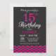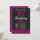 15th Birthday Invitation with Black and Hot Pink Chevron. Chalkboard. Kids Birthday. Boy or Girl Bday Invite. For further customisation, please click the "Customise it" button and use our design tool to modify this template.
